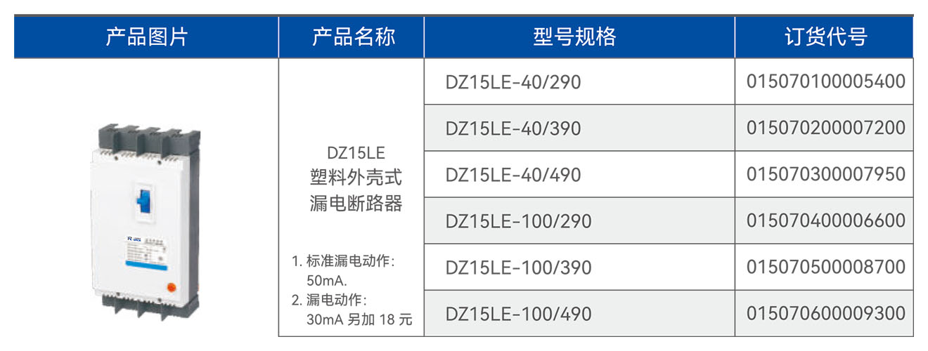 DZ15LE塑料外壳式漏电断路器