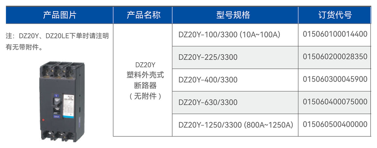 DZ20Y塑料外壳式断路器(无附件)