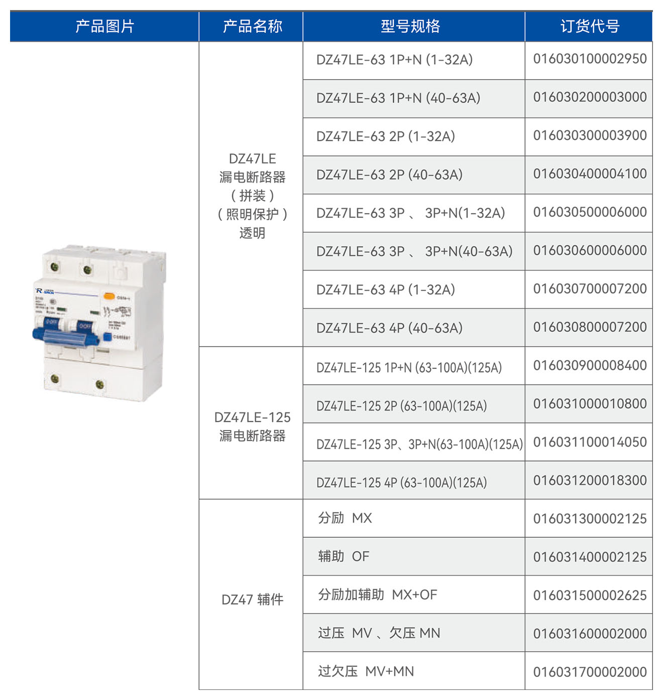 塑壳断路器、漏电断路器系列