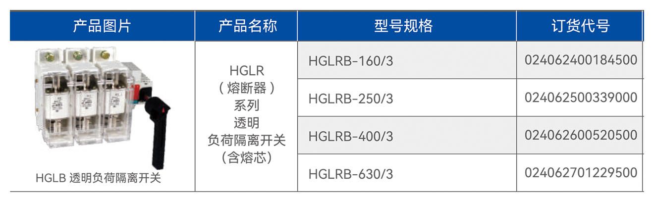 HGLR(熔断器)系列透明负荷隔离开关(含熔芯)