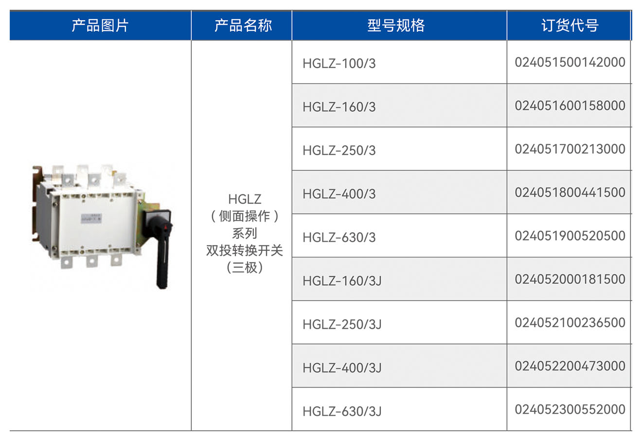 HGLZ(侧面操作)系列双投转换开关(三板)