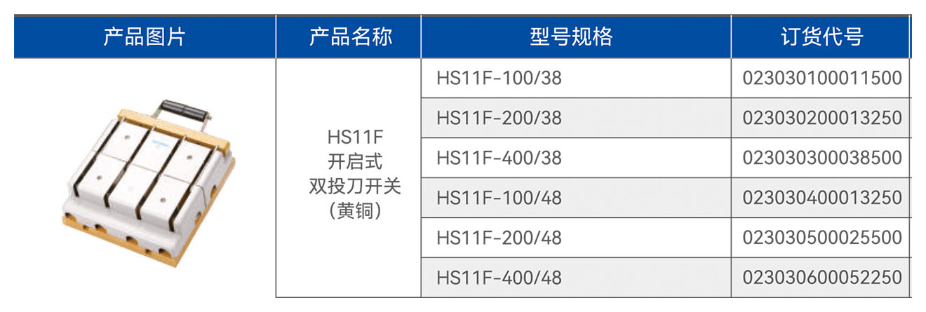 HS11F开启式双投刀开关(黄铜)