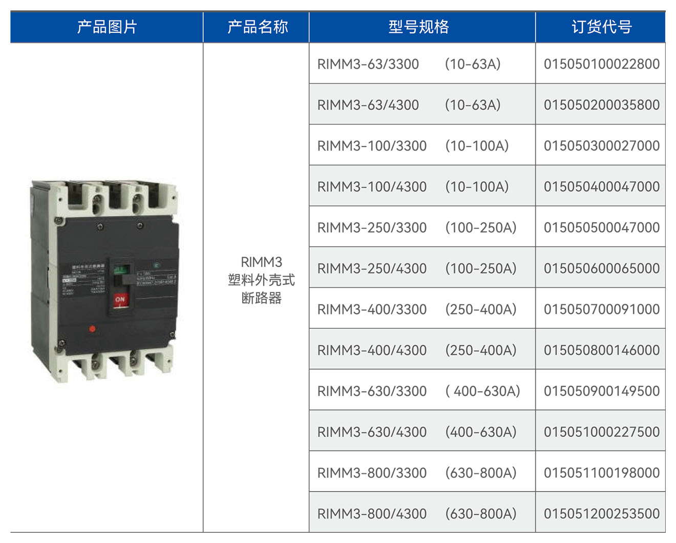 RIMM1-800H/3300塑料外壳式断路器
