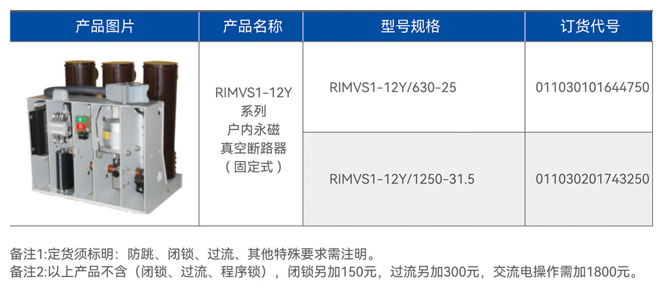 RIMVS1-12Y系列户内永磁真空断路器(固定式)