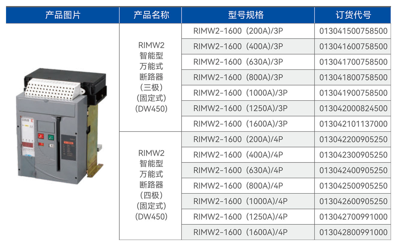 RIMW1智能型万能式断路器(固定式)(DW450)