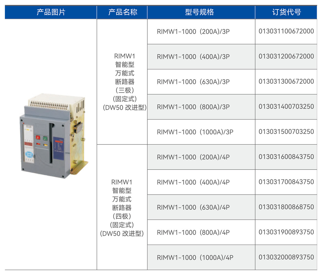 RIMW1智能型万能式断路器(固定式)(DW50改进型)