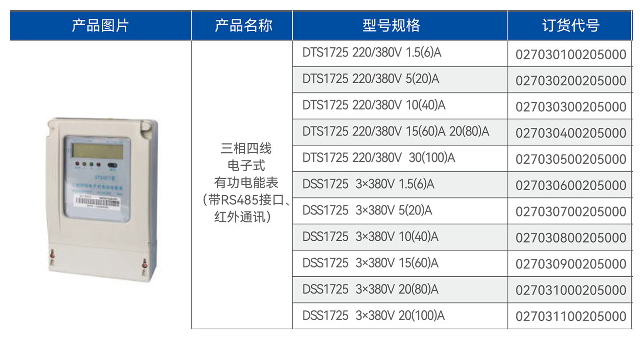三相四线电子式有功电能表(带RS485接口、红外通讯)